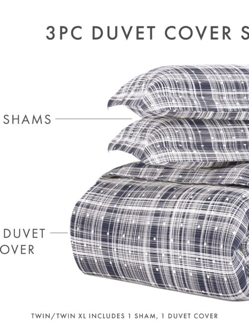 • Noble Linens Gingham Check Natural 3-Piece Patterned Duvet Cover Set, Queen