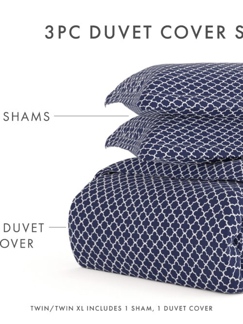 • Noble Linens Navy Quatrefoil Pattern Duvet Set 3-Piece Duvet Cover Set, King/Cal King
