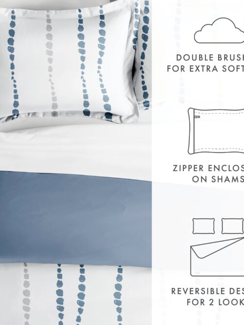• Noble Linens Blue Reversible Urban Vibe Print 3-Piece Duvet Cover Set, Full/Queen