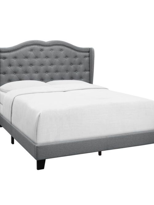 • Home Design Aden Queen Upholstered Panel Bed Frame with Wingback Headboard, Button Tufted, Gray, Easy Assembly, for Adult Bedroom