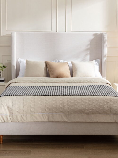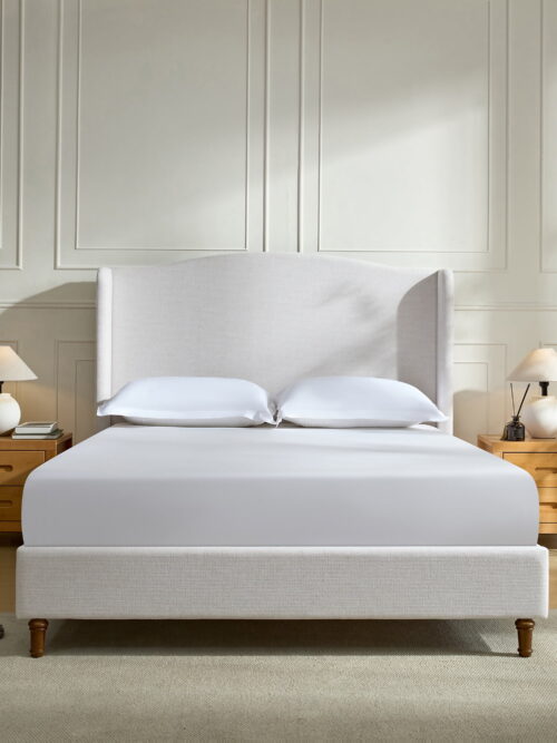 • Miniyam 54" High Queen Size Upholstered Bed with Wingback Headboard for Adult, Ivory White