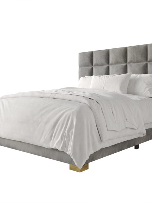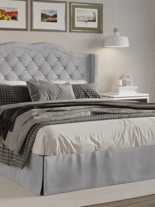 Castle Place Modern Elegance Velvet Upholstered King Bed, Silver Grey