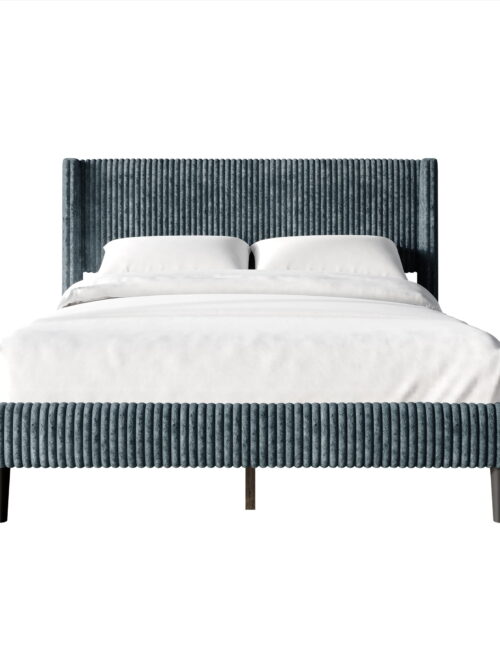 Castle Place Modern Wingback Corduroy Velvet Upholstered Queen Platform Bed, Light Blue
