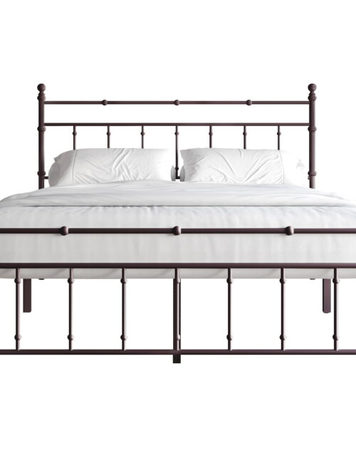 • Castle Place Minimalist Modern Queen Size Metal Platform Bed, Brown