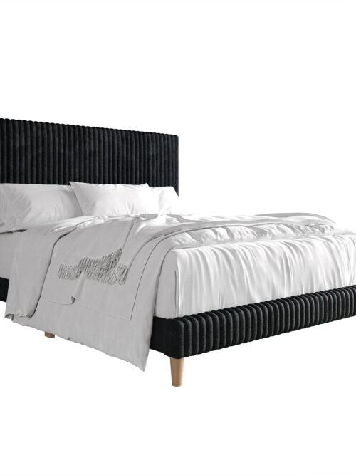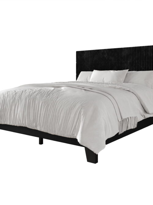 Castle Place Contemporary Corduroy Pleated Velvet Upholstered Queen Platform Bed, Black