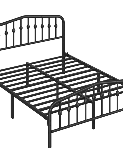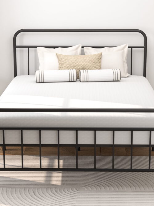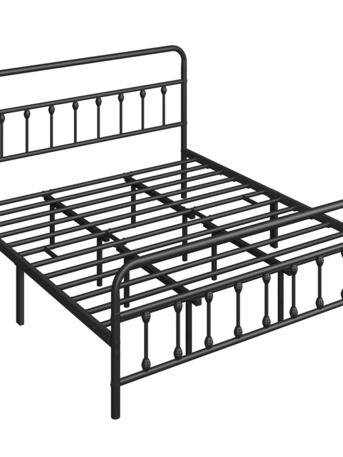 • Alden Design King Size Metal Platform Bed Frame with High Headboard and Footboard, Adult, Black