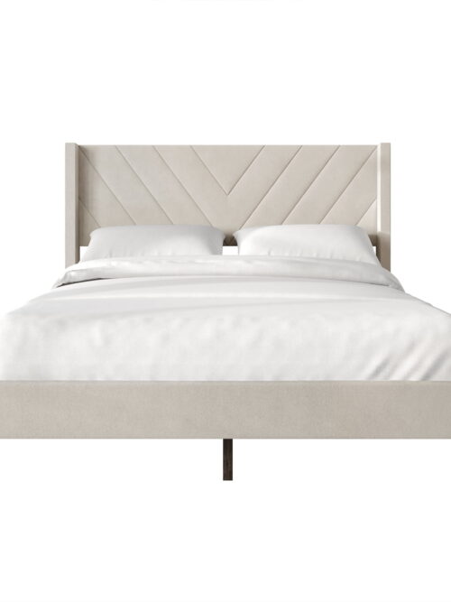 Castle Place Sophisticated Wingback Velvet Upholstered King Platform Bed, Beige