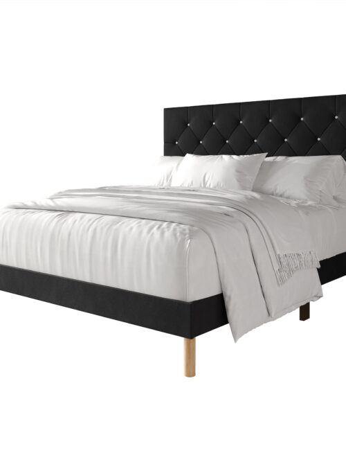 • Castle Place Modern Diamond Tufted Velvet Upholstered Queen Bed, Black