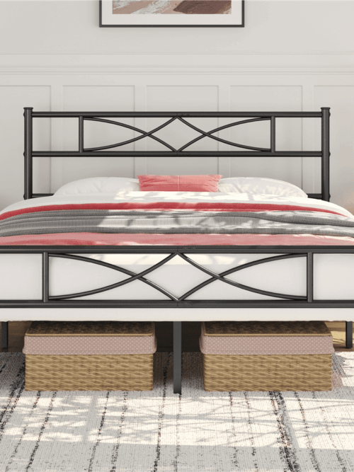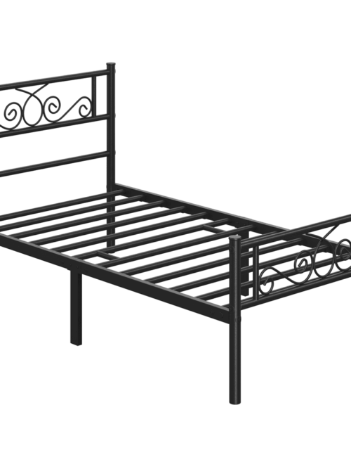 • Renwick Modern Scroll Metal Platform Bed for Adult, Black, Twin XL