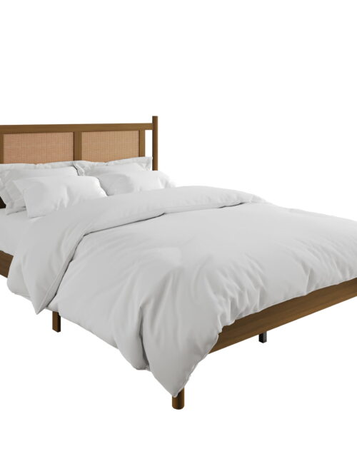 • Castle Place Rattan Queen Wooden Platform Bed, Walnut
