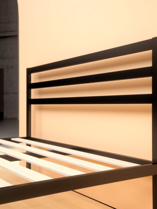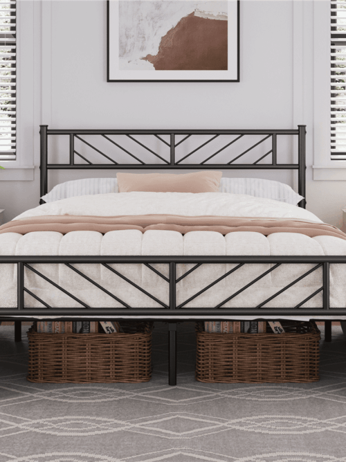 • Castle Place Modern Geometric Slat King Size Metal Platform Bed, Black