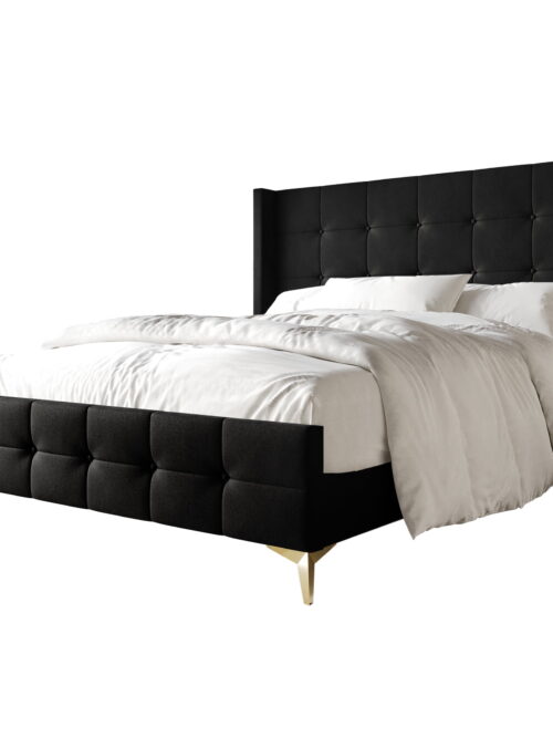 Castle Place Luxury Full Size Velvet Upholstered Bed In Black