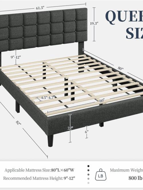 • Renwick Upholstered Platform Bed with Square Tufted Headboard, Queen, Dark Gray