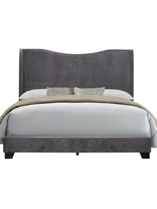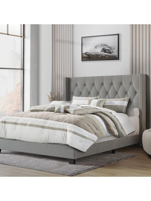 • Home Design Kris Queen Upholstered Wingback Bed Frame with Arched Wingback Headboard and Nailhead Trim, Dark Gray, Easy assembly