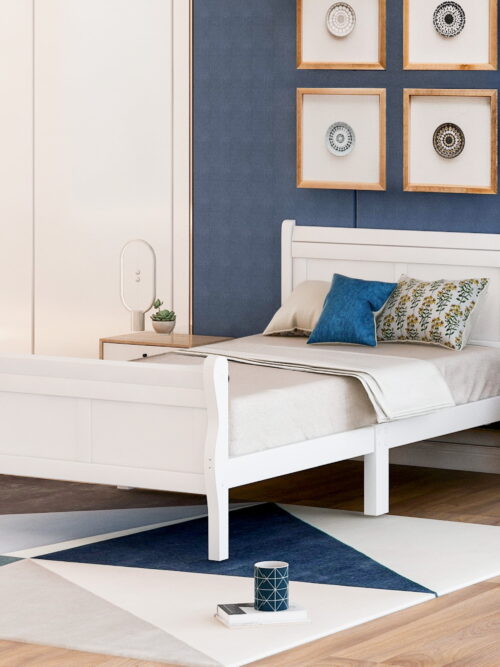 • Gewnee Twin Size Wood Platfrom Bed with Headboard and Footboard for Kids and Adults,White
