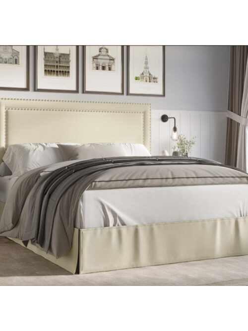 • Home Design Keith King Upholstered Panel Bed Frame with Nailhead Trim, Beige – Adult Bedroom Furniture, Easy Assembly