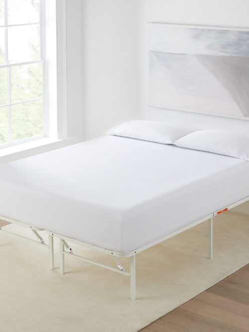 Mainstays Cal King 14″ High Profile Foldable Steel Platform Bed Frame with Storage Space Under Frame, No Box Spring Required, White
