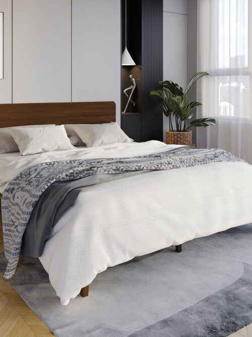 • Castle Place Modern Full Wooden Bed, Dark Grey