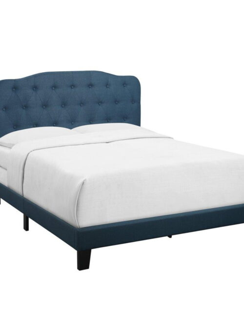 • Home Design Carmel Upholstered King Panel Bed Frame with Curved Tufted Headboard and Padded Seat, Blue, Easy assembly