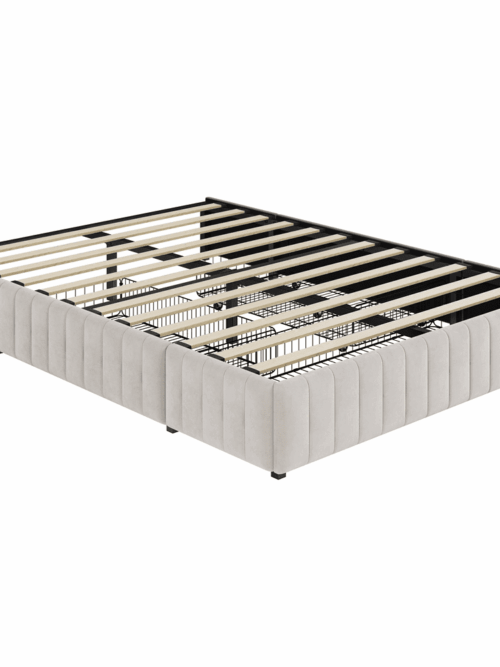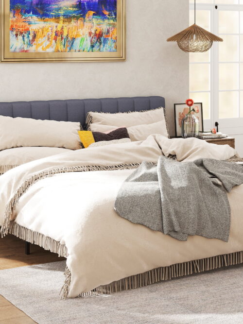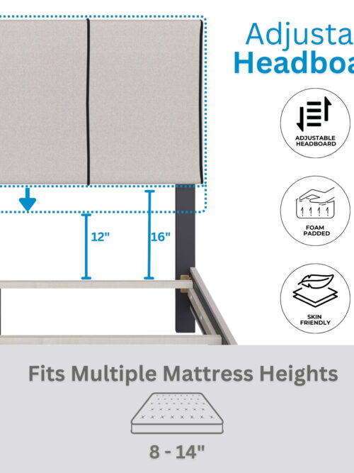 • Boyd Sleep Lucena Off White Linen Queen Size Upholstered Platform Bed Frame with Adjustable Headboard, Qualified Box Spring or Foundation Required for Use