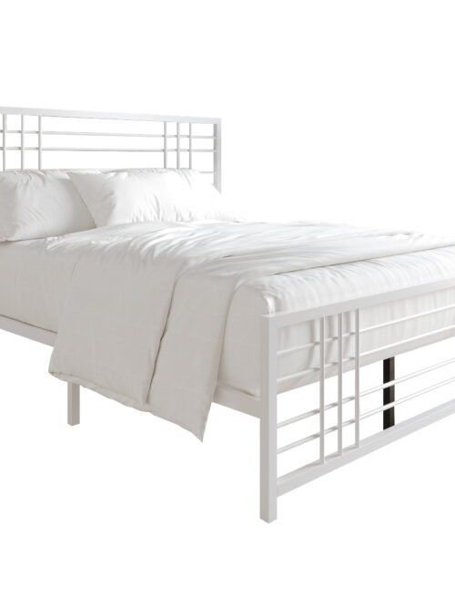 • Castle Place Simple Classic King Size Metal Panel Bed, White