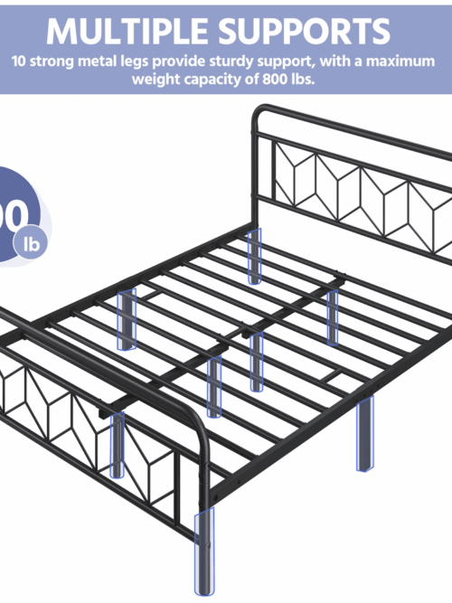 • Renwick Vintage Metal Platform Queen Bed, All Ages, Black