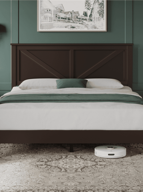 • Renwick Queen Size Modern Farmhouse Platform Bed for Adults, Espresso