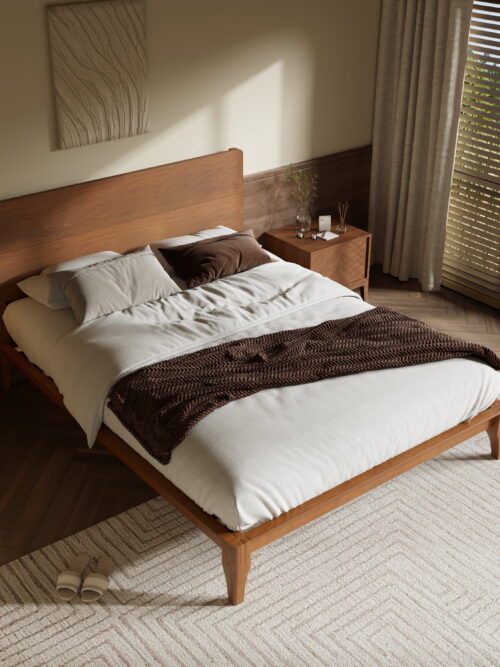 Euroco Mid-Century Queen Size Platform Bed, Bamboo Wood Bed for Bedroom, Brown