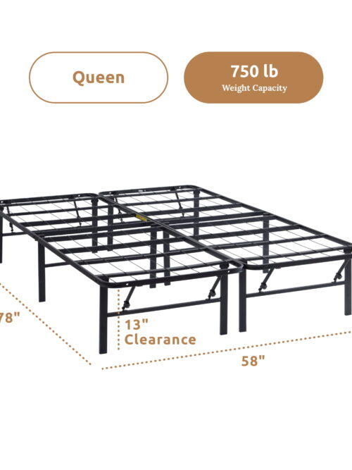 Rest Haven 14″ Black Steel Platform Bed Frame, Queen