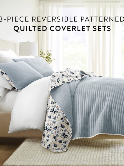 • Celine Linen 2-Piece Bedspread Coverlet Quilted Set with Sham-Twin/Twin XL Navy Blue/Gray