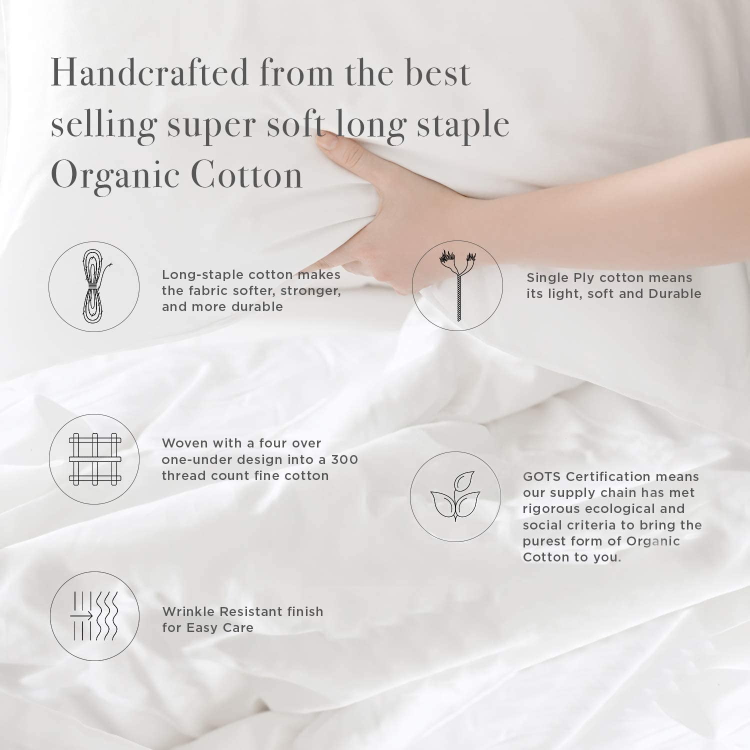 - LONG STAPLE COTTON: Our sheets are made with the highest quality organic cotton yarns available. The length of cotton fiber, says a lot about the quality of the cotton; we use the longest staple available in organic cotton.