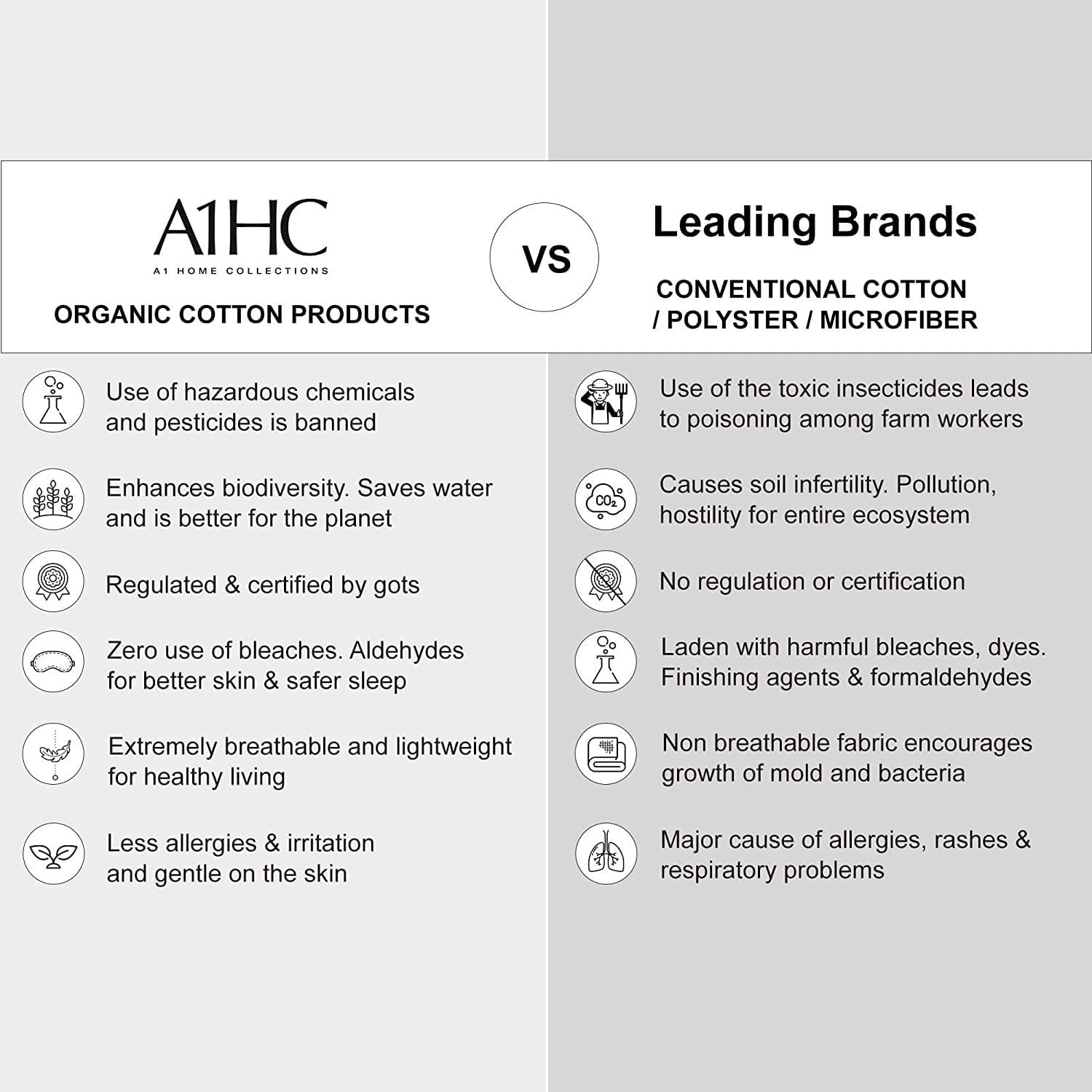 A1HC Organic flat sheet is in our Lusturous cotton sateen weave. Woven from 100% long-staple Organic cotton, Classic sheets are smooth, airy and cool, for the ultimate night’s sleep.100% GOTS-CERTIFIED ORGANIC COTTON :The highest certification in organic cotton farming and production means the fabric used was made without the skin-irritating chemicals or toxic dyes found in conventional cotton. Fabric this pure is the very best thing to have next to your skin for eight hours a night.