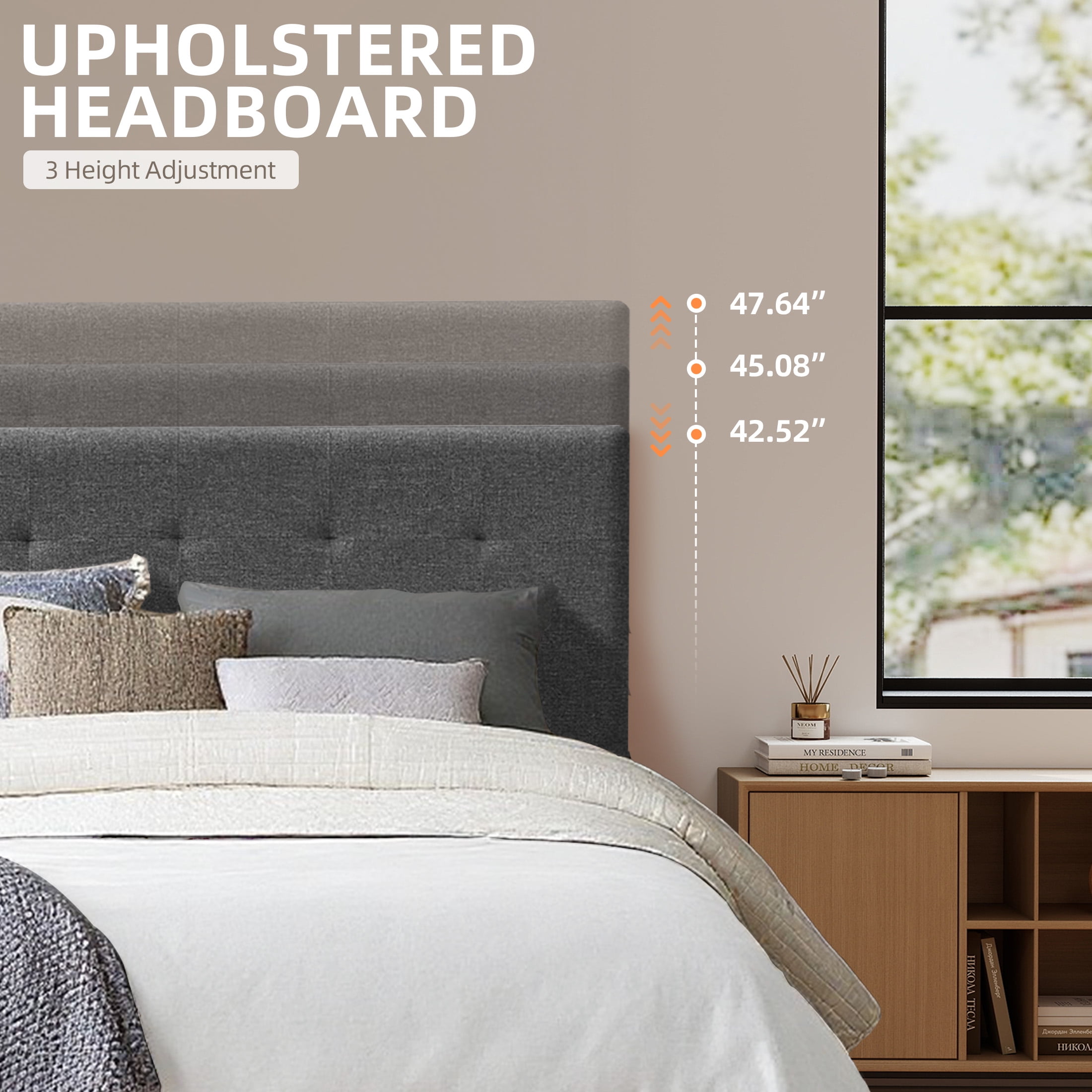• Height-Adjustable Headboard – The Full bed with height-adjustable panel headboard ranges from 39.3″ to 47.2″, you can adapt it to the optimal height for your needs. Just apply mattress and sheet, you’ll be ready for read, relax or sweet dream in total comfort.