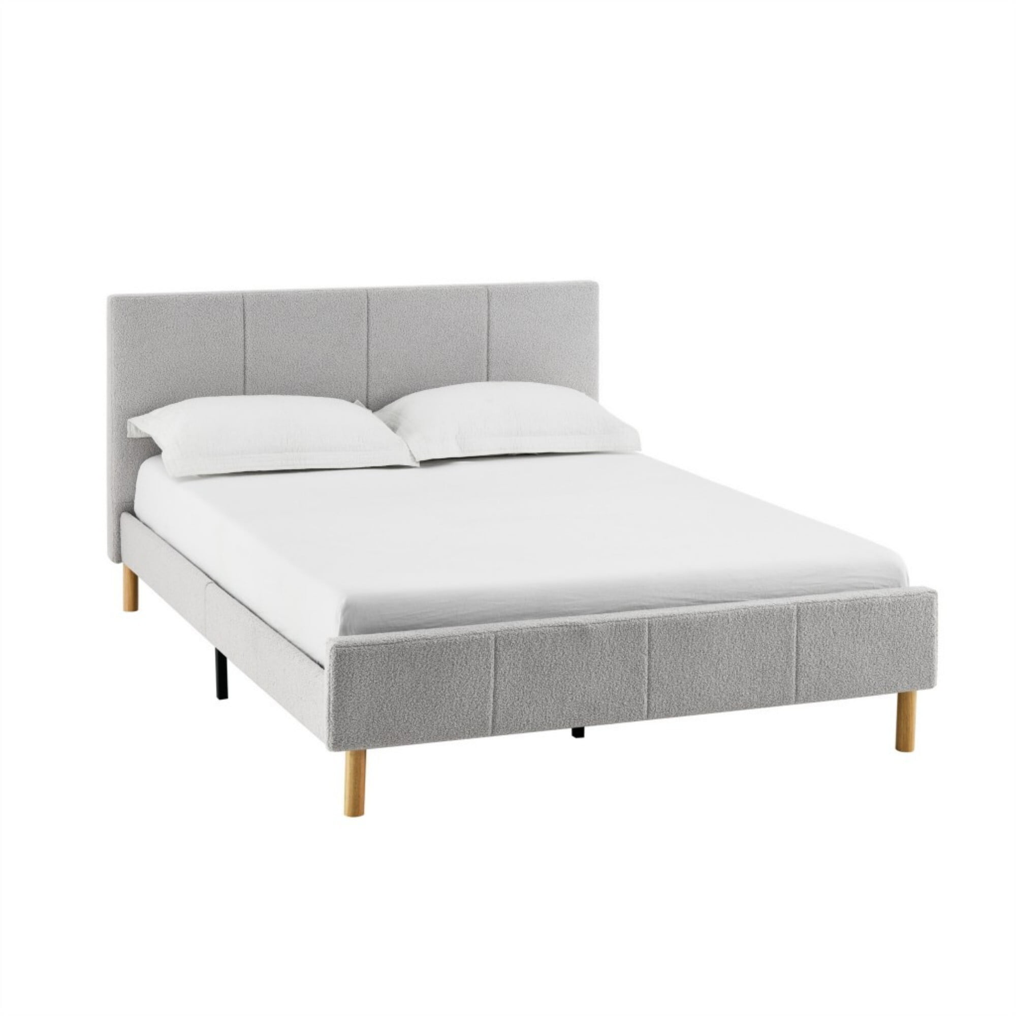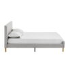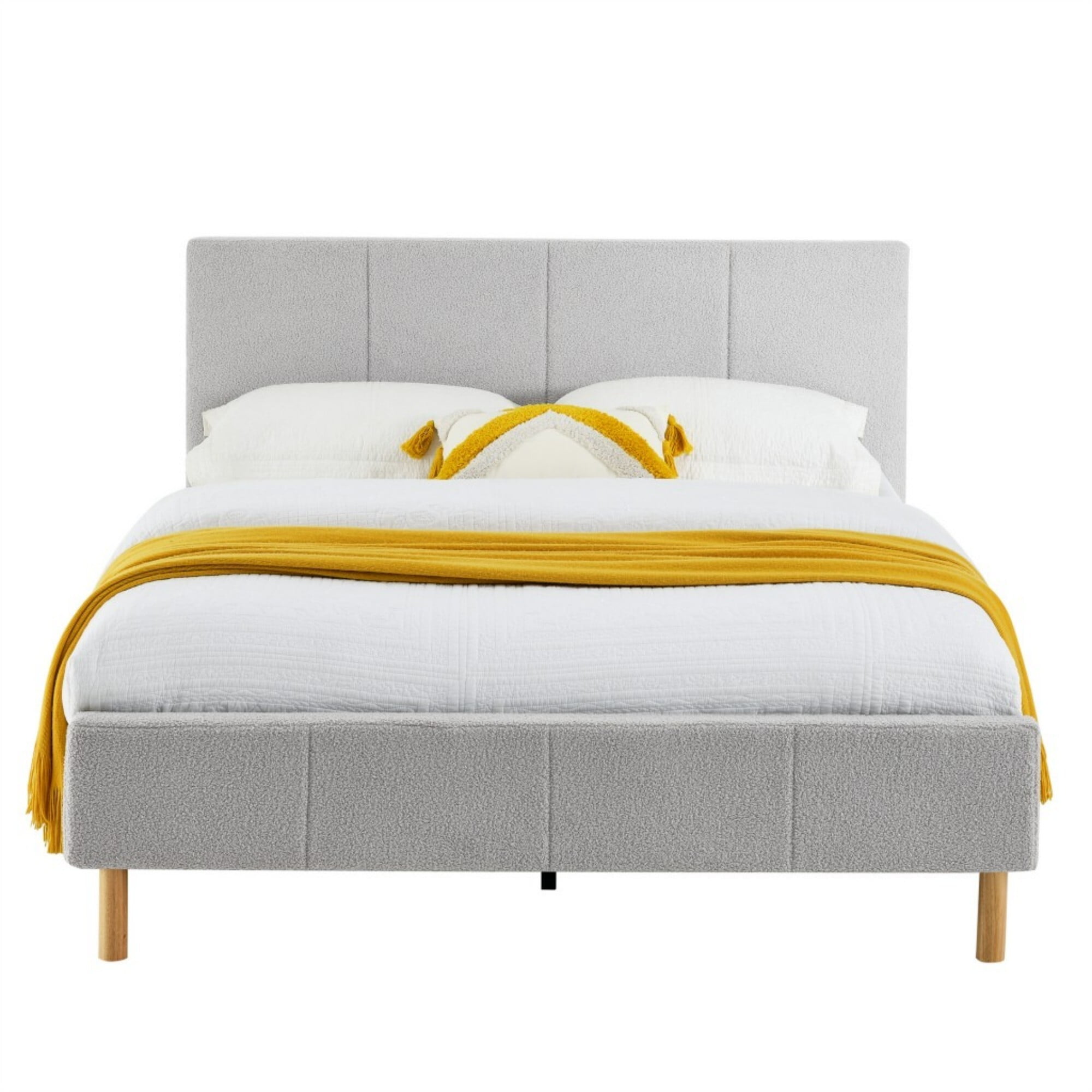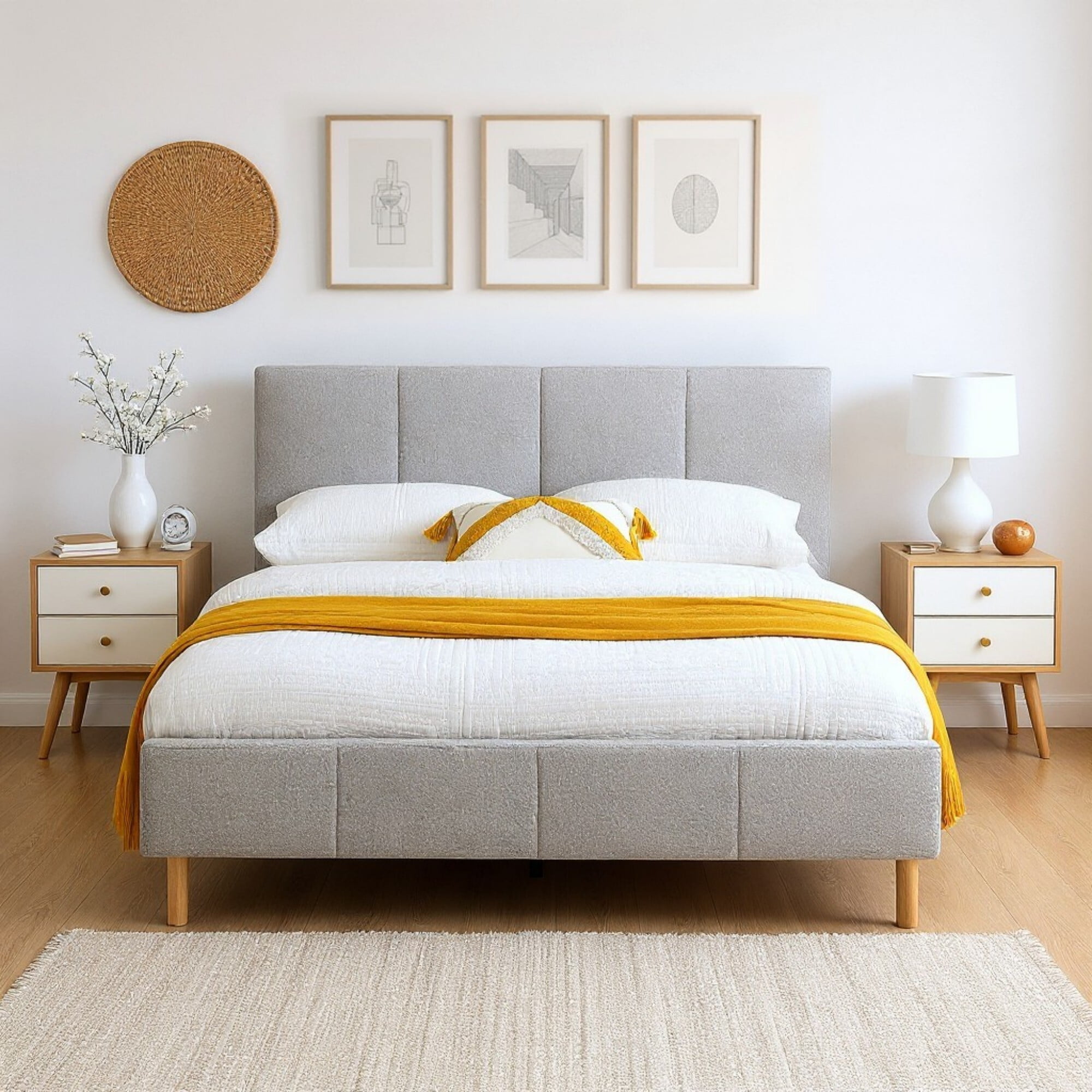 Timeless Minimalist Design – This modern platform bed features a sleek silhouette with clean lines, gray velvet upholstery, and natural wood legs that effortlessly match any bedroom style. This bed adds a warm, elegant touch that elevates your sleeping space.