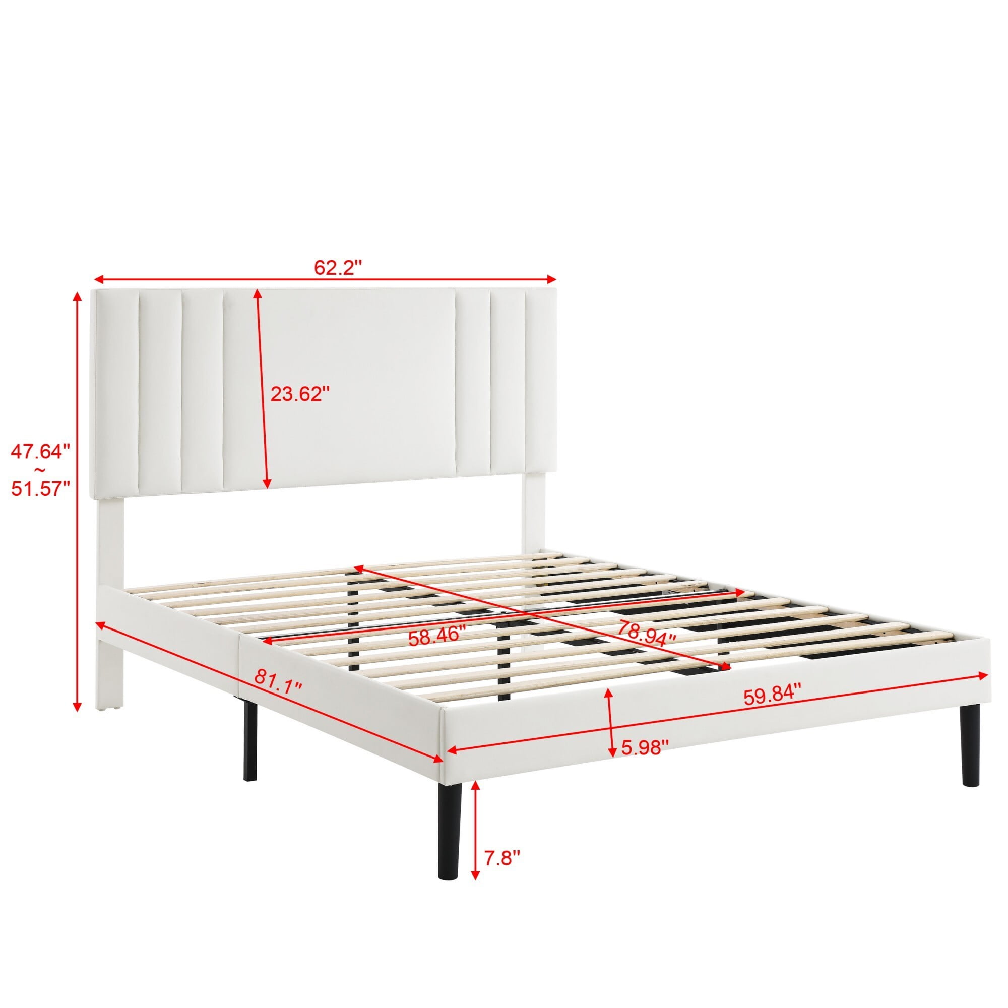 - Queen Bed Dimension: 81.1” L X 62.2” W X 51.57” H