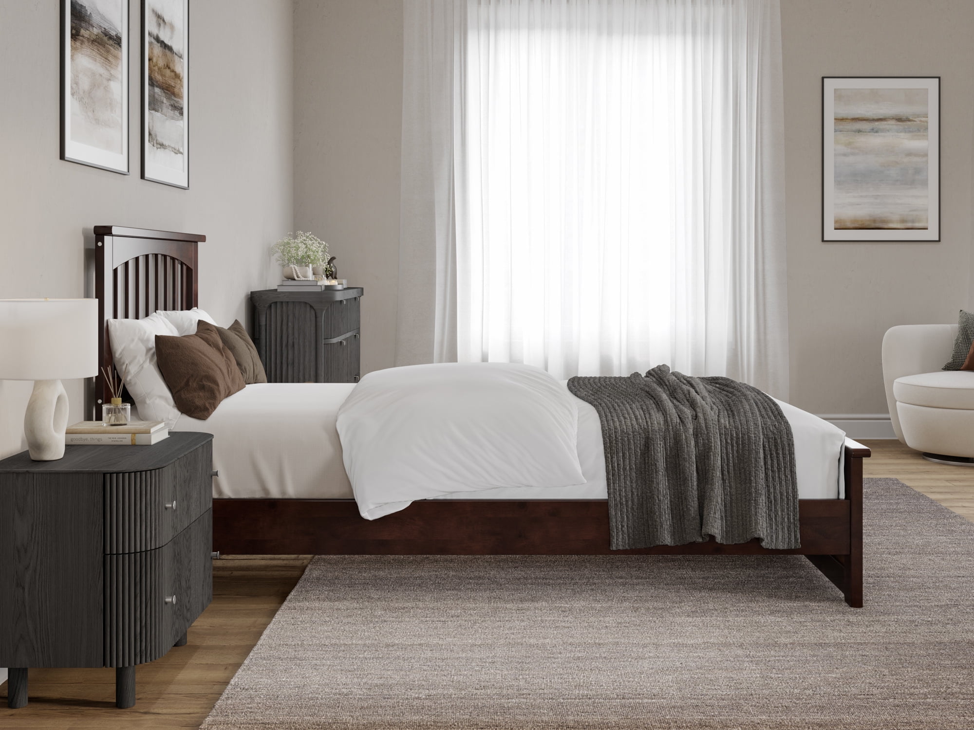 • AFI Becket Twin XL Solid Wood Low Profile Platform Bed with Matching Footboard, Walnut