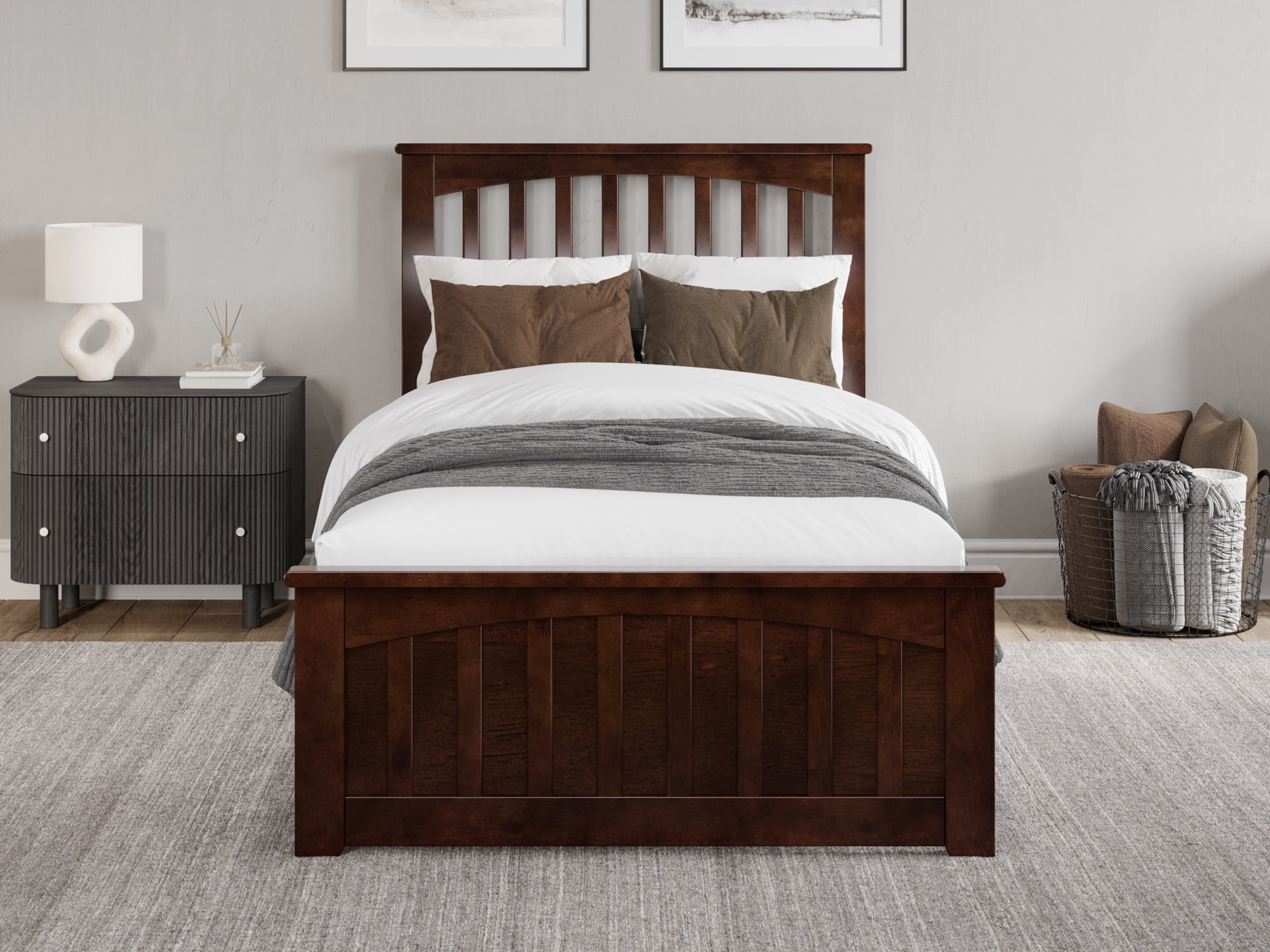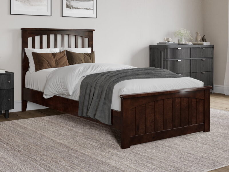 AFI Becket Twin-XL Solid Wood Low Profile Platform Bed with Matching Footboard, Walnut