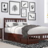 The Becket Low Profile Platform Bed with Matching Footboard is more than a functional sleeping space – it’s a stunning piece of décor thanks to the classic style of the headboard. Traditional vertical slats meet beautifully crafted crown molding to make an eye-catching spot for an idyllic slumber. Available in a range of color options, including Espresso, White, and Walnut, this bed will seamlessly match your existing home décor. Experience a restful night’s sleep on the low-profile frame, thoughtfully designed with sturdy wood slats to provide exceptional mattress support, eliminating the need for a box spring. Conveniently stay connected with the attachable surface mount turbocharger, equipped with 2 USB ports to keep your devices charged and within arm’s reach. Available in Twin, Twin XL, Full, and Queen sizes, the Becket Platform Bed with Matching Footboard is a stylish addition to upgrade any room in your home.