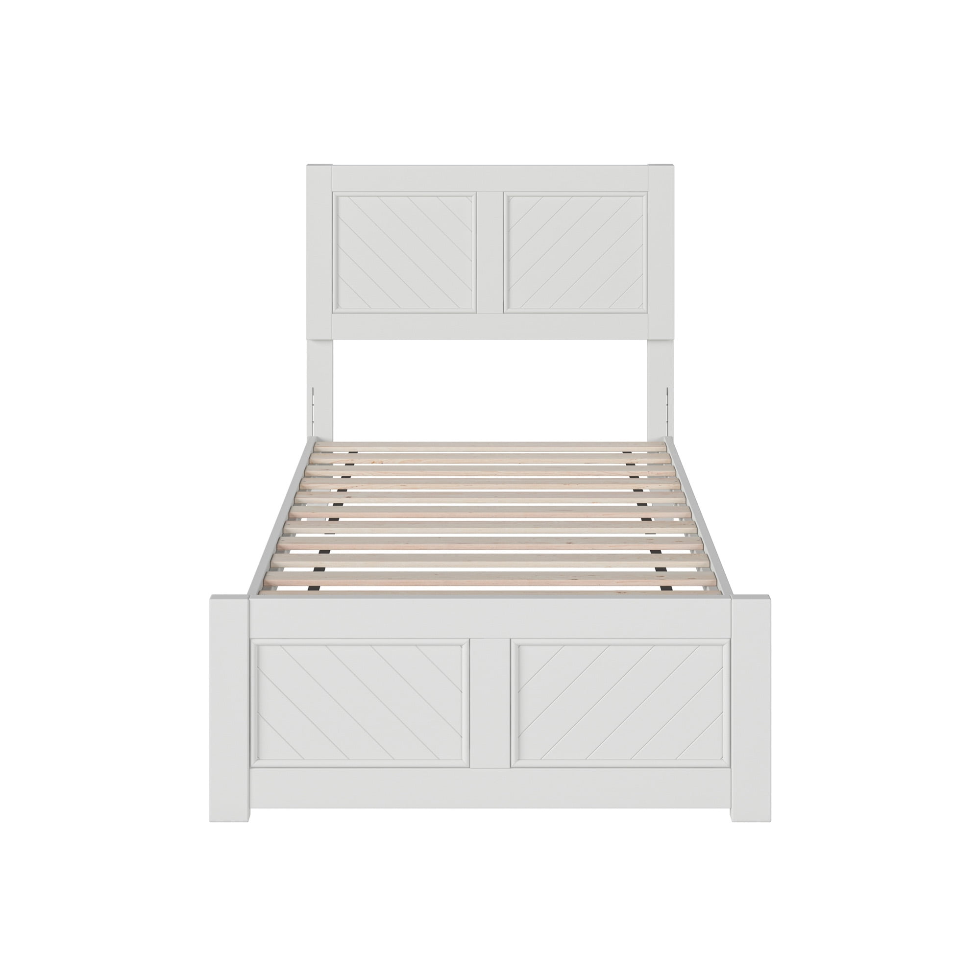 Experience the perfect blend of rustic charm and modern elegance with the Berkshire Low Profile Platform Bed with Matching Headboard and Footboard. Inspired by the tranquility of the countryside, this set includes a stunning matching headboard and footboard, both adorned with captivating chevron carvings, adding a unique touch of natural elegance to your bedroom decor. Customize your aesthetic with timeless color options: white, walnut, or light toffee. Plus, enjoy superior mattress support without the need for a foundation, ensuring a restful and comfortable sleep experience night after night. Elevate your bedroom with the Berkshire Low Profile Platform Bed and experience the perfect fusion of modernity and practicality.