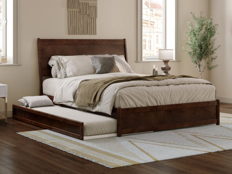 AFI Casanova Queen Wood Platform Bed with Panel Footboard and Twin-XL Trundle, Walnut