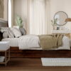 • Sleek Angled Headboard: Enhance your bedroom’s modern aesthetic with our sleek, angled solid wood panel headboard, infusing a contemporary touch into your space