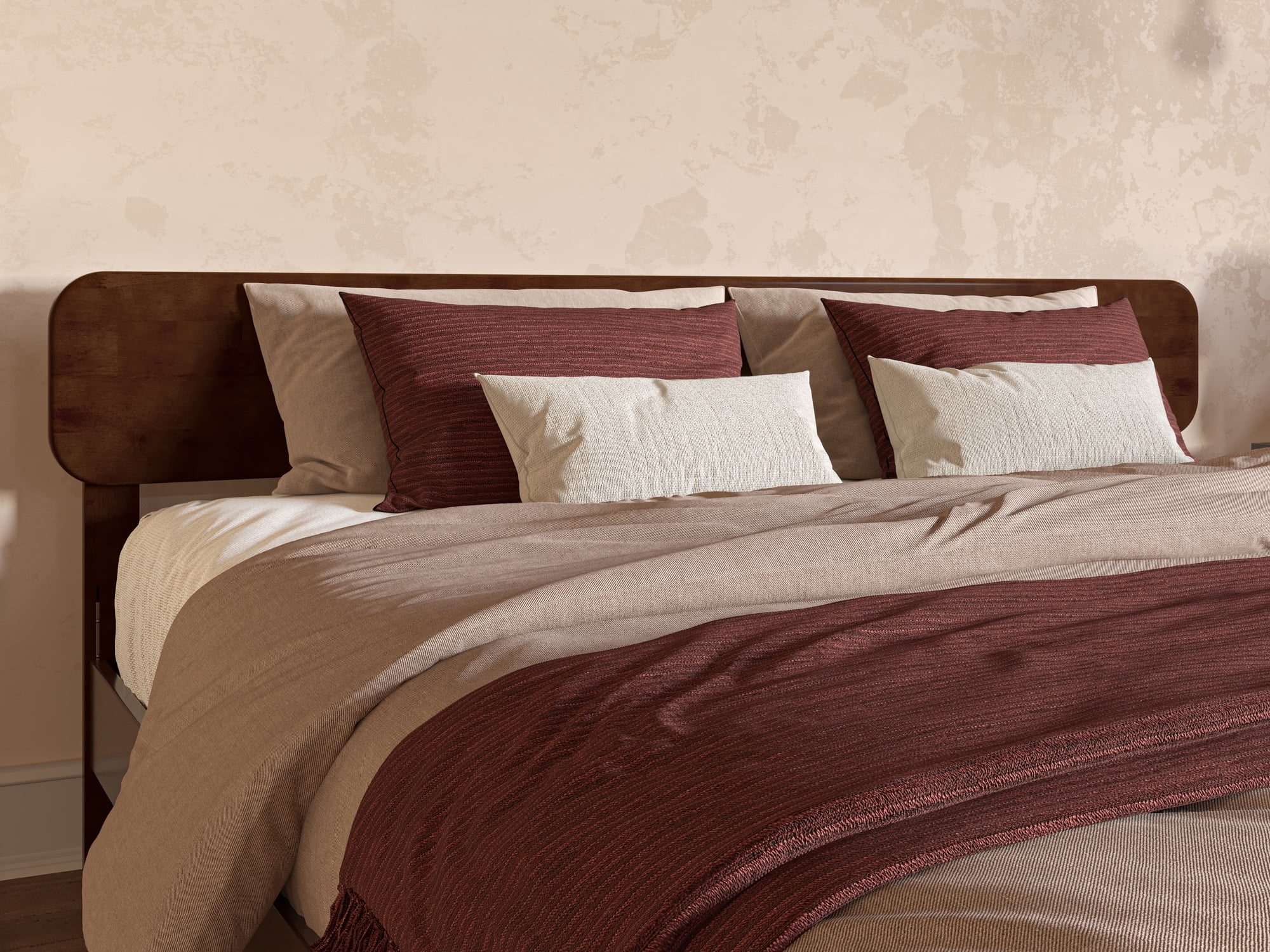 • Modern Adjustable Headboard: sleek, low, rounded headboard adjusts to accommodate various mattress heights