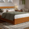 AFI Lylah Full Wood Platform Bed with Panel Footboard and Twin Trundle, Light Toffee