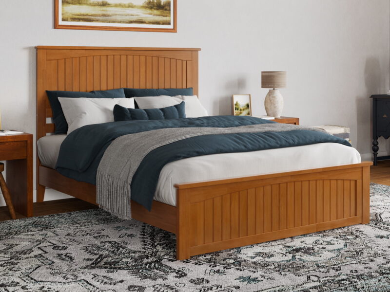 • AFI Naples Queen Solid Wood Low Profile Platform Bed with Matching Footboard, Light Toffee