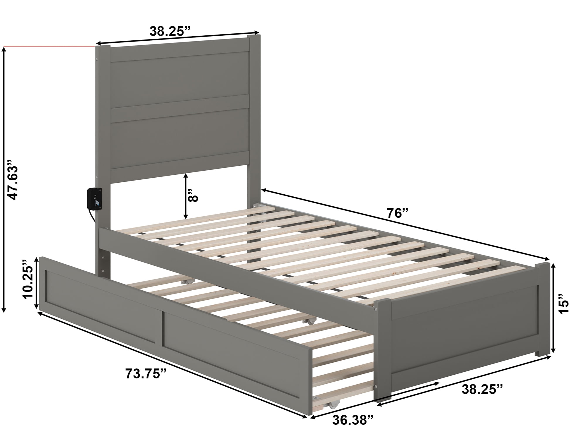 Modern yet Classic, this stunning NoHo platform bed is the perfect addition to any home, no matter the style! The trundle underneath adds an extra sleeping space in a matter of seconds and there is no need to worry about the placement of your bed, because the trundle can be added to either side, so you always have control of your space and how you use from a mix of solid hardwood and veneers for durability, you will rest easy at night knowing you are fully supported. A strong, supportive, slat kit means there is no need for a foundation as the mattress sits perfectly on top of the slats and side rails, offering extra support and the perfect amount of airflow! Attach the included charging station to keep all your favorite devices charged and ready to go after a great night’s sleep!