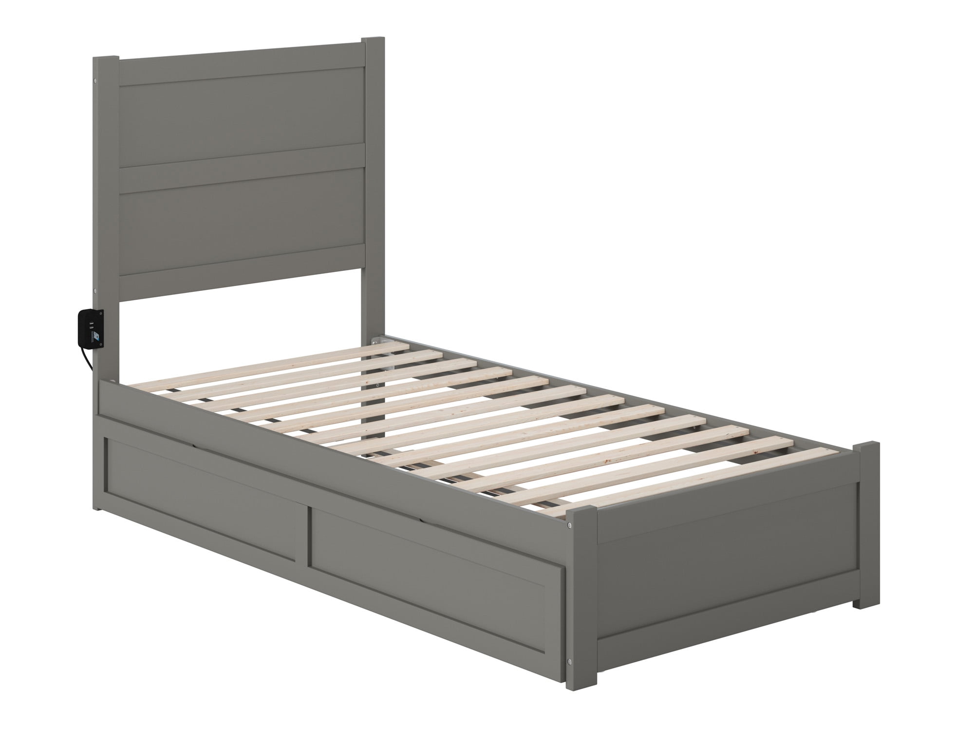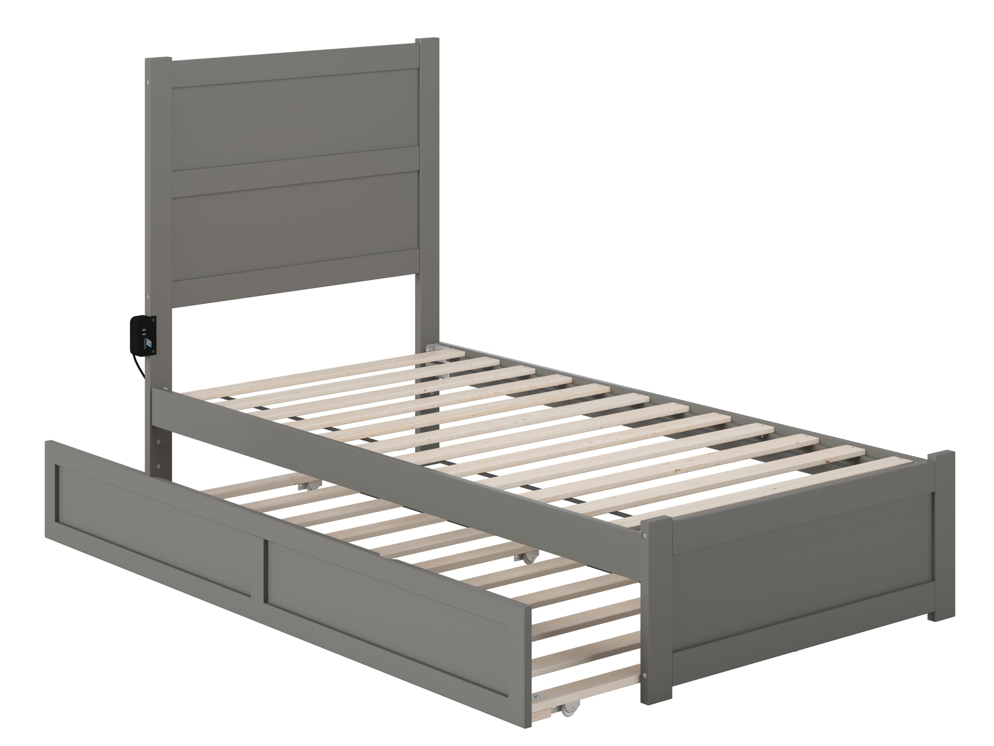 - AFI NoHo Twin Wood Platform Bed with Headboard, Footboard & Twin Trundle in Grey