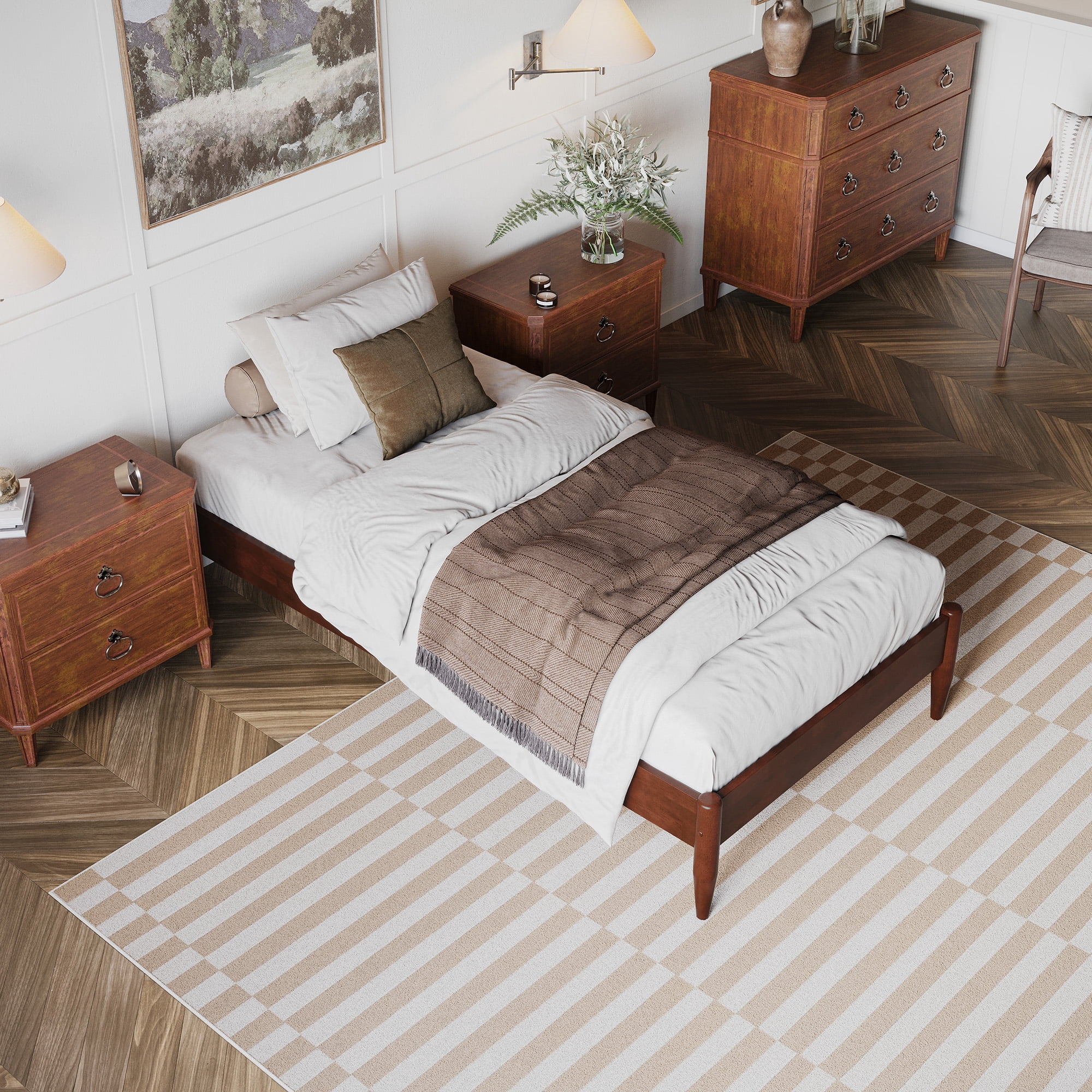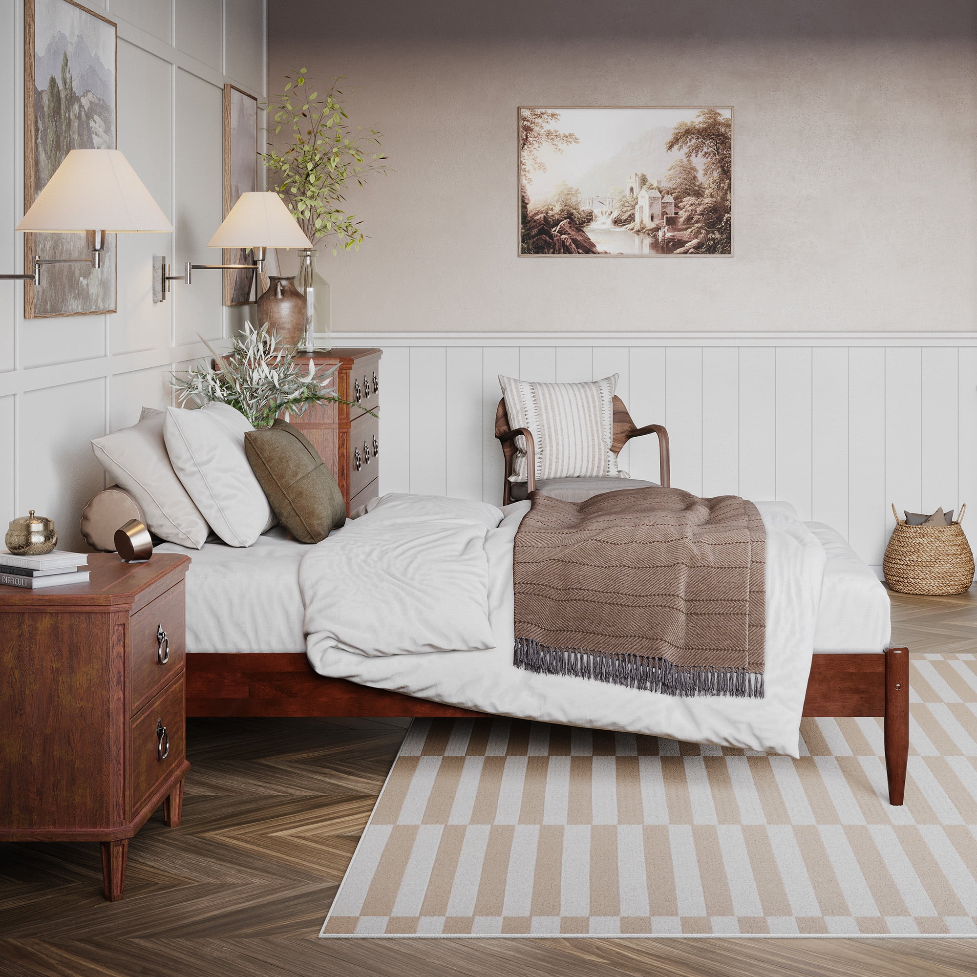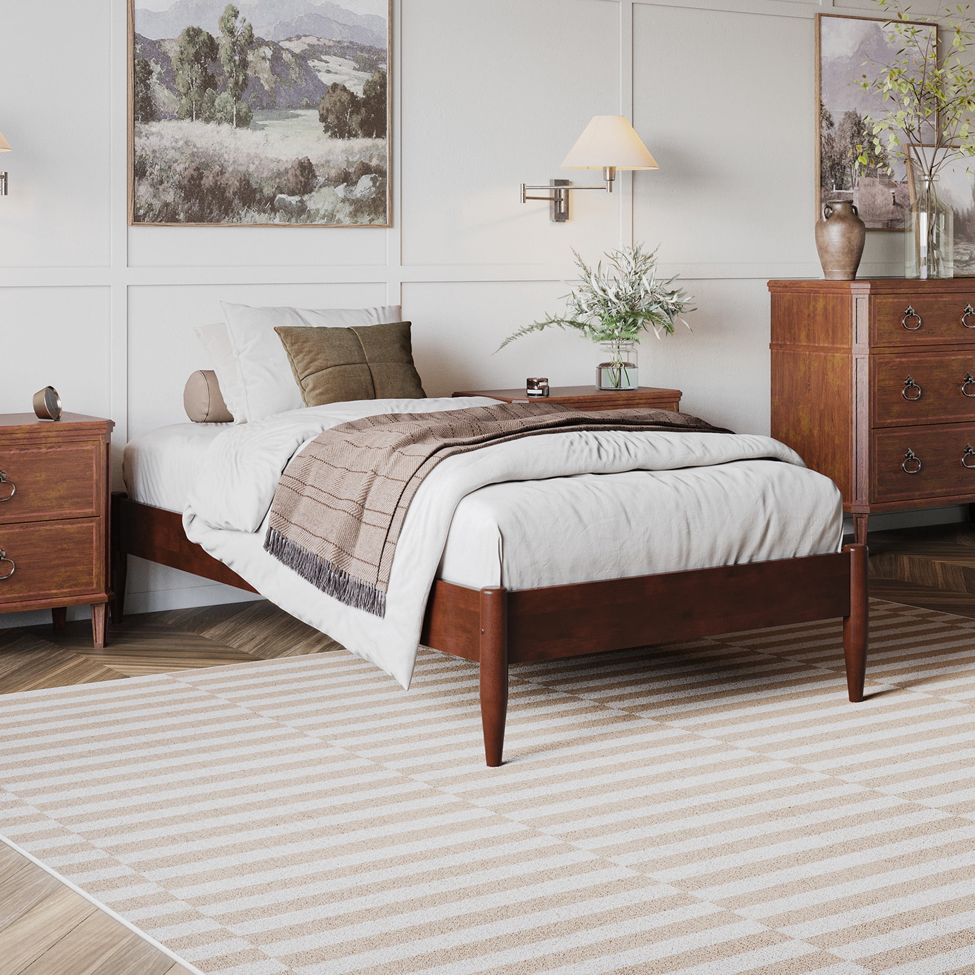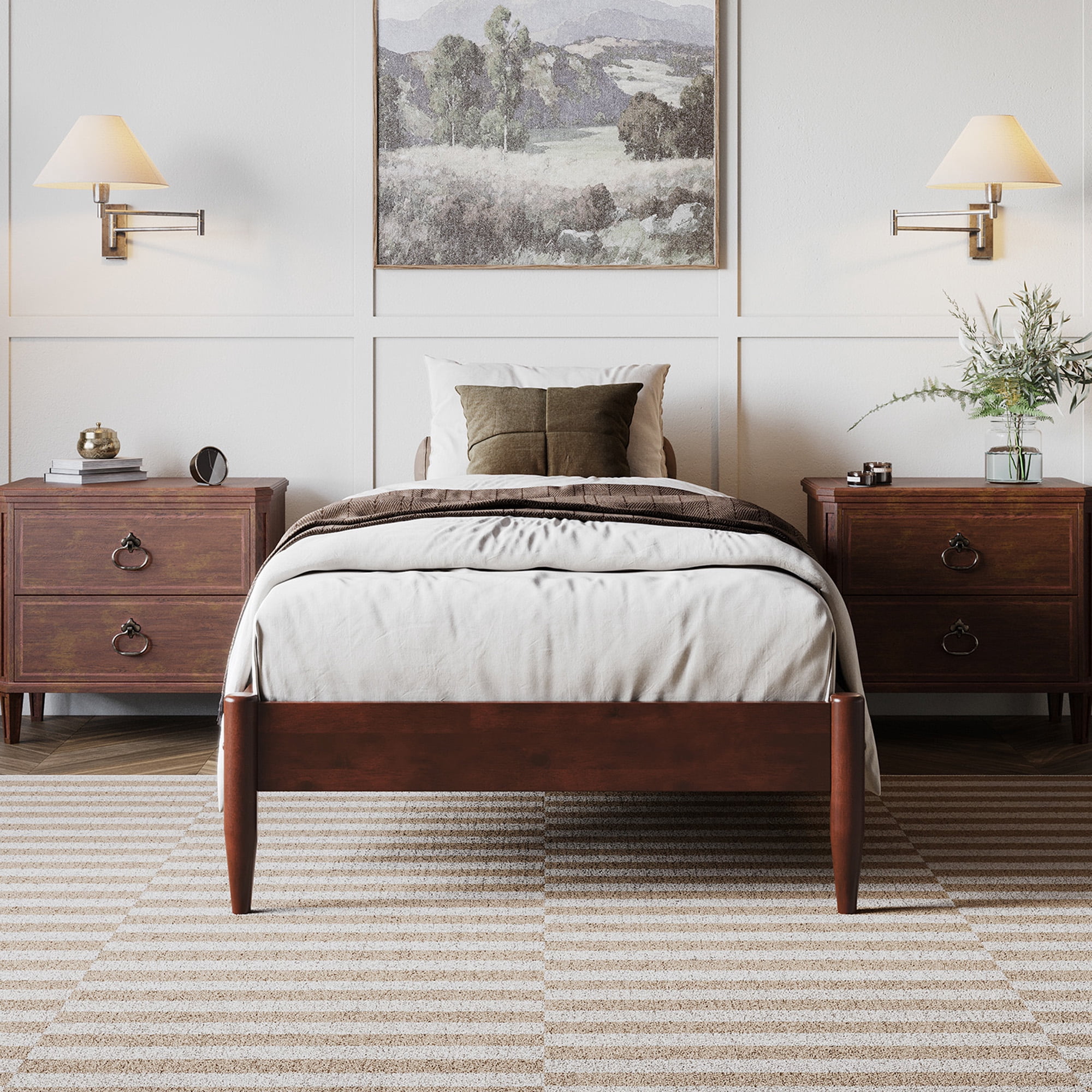 - AFI Pasadena 12″ Walnut Solid Wood Low Profile Platform Bed, Twin XL