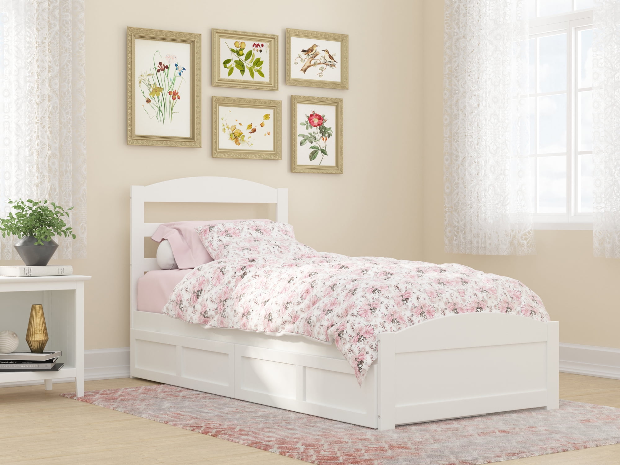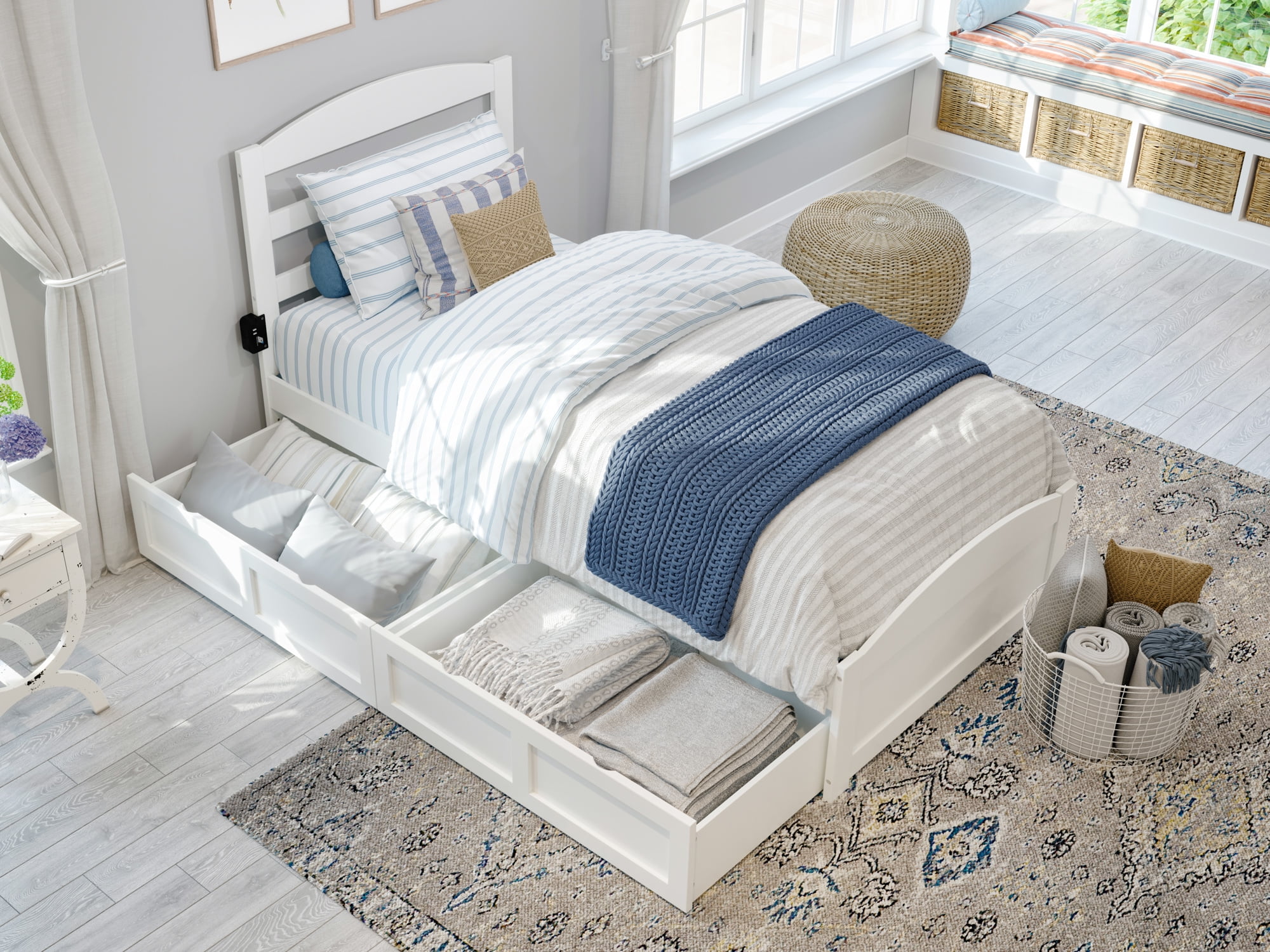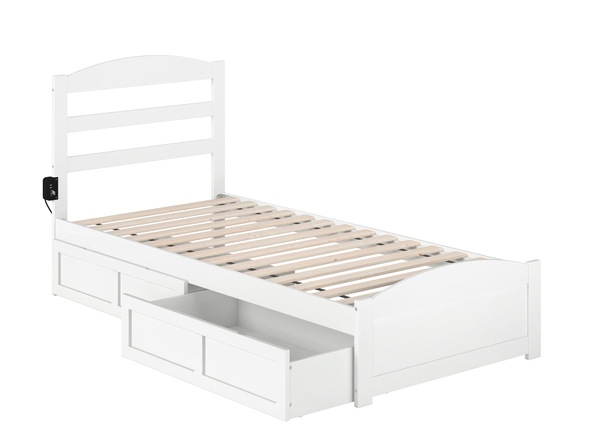 - AFI Warren Twin XL Wood Platform Bed with Headboard, Footboard & 2 Storage Drawers in White
