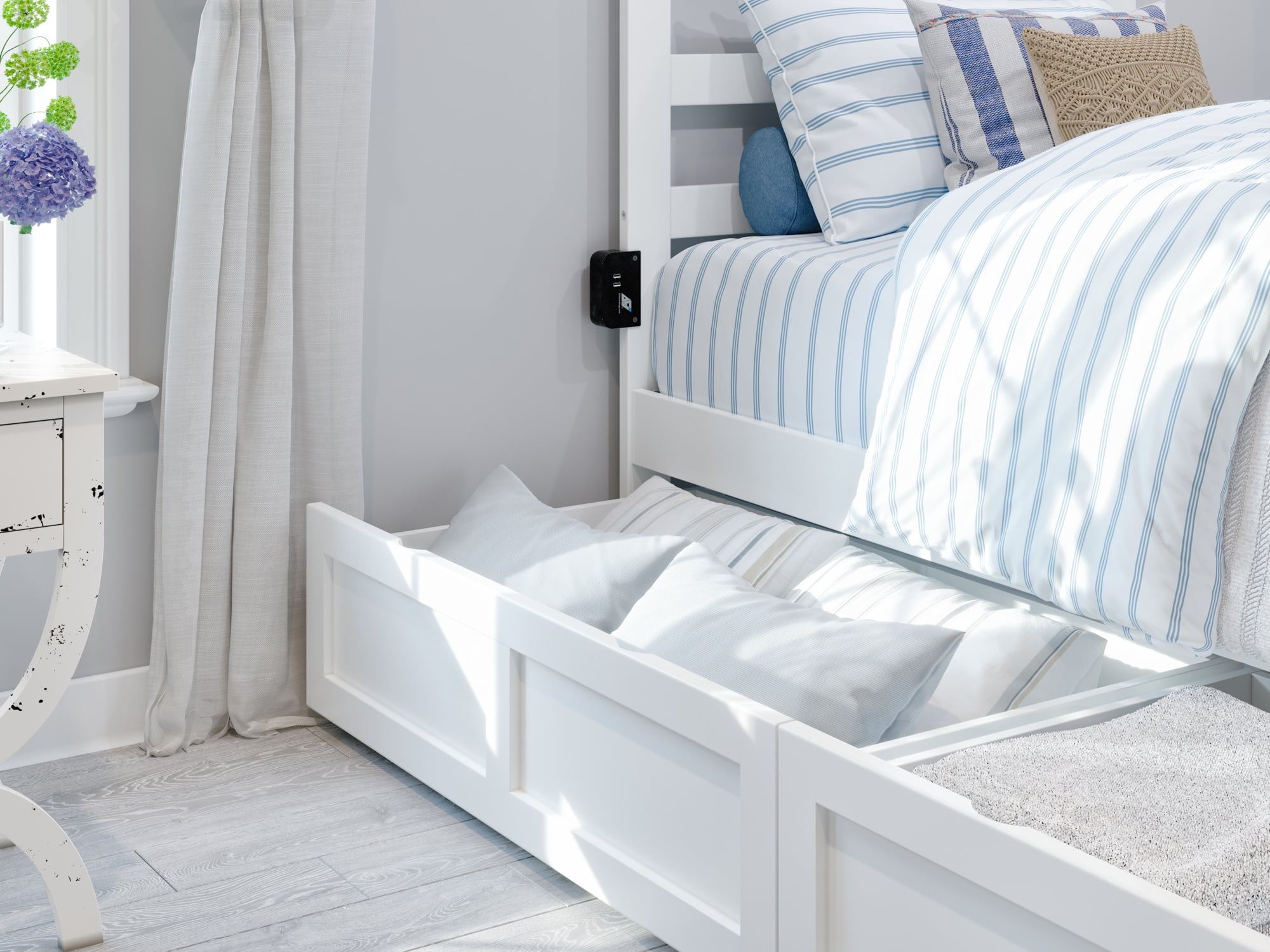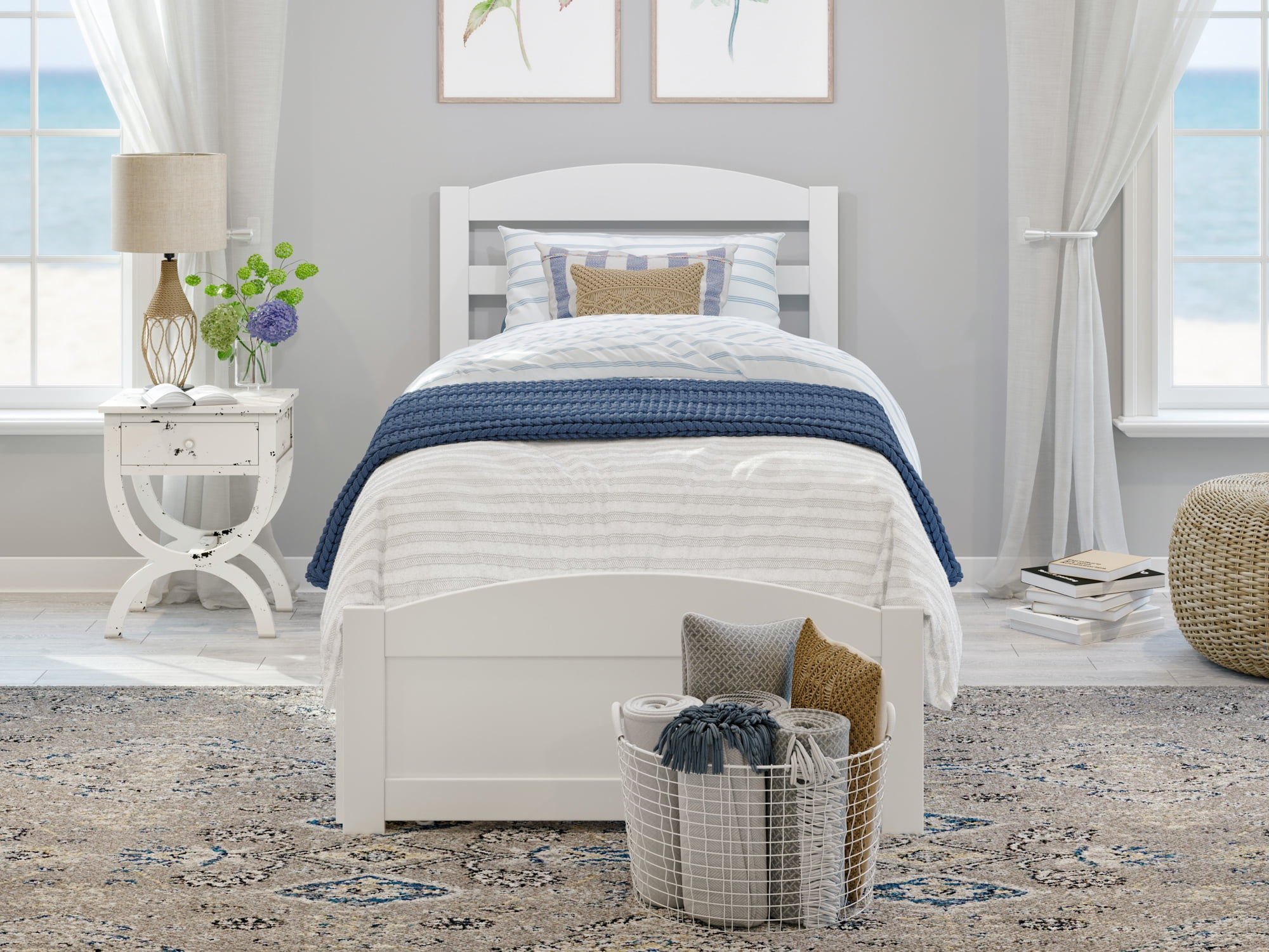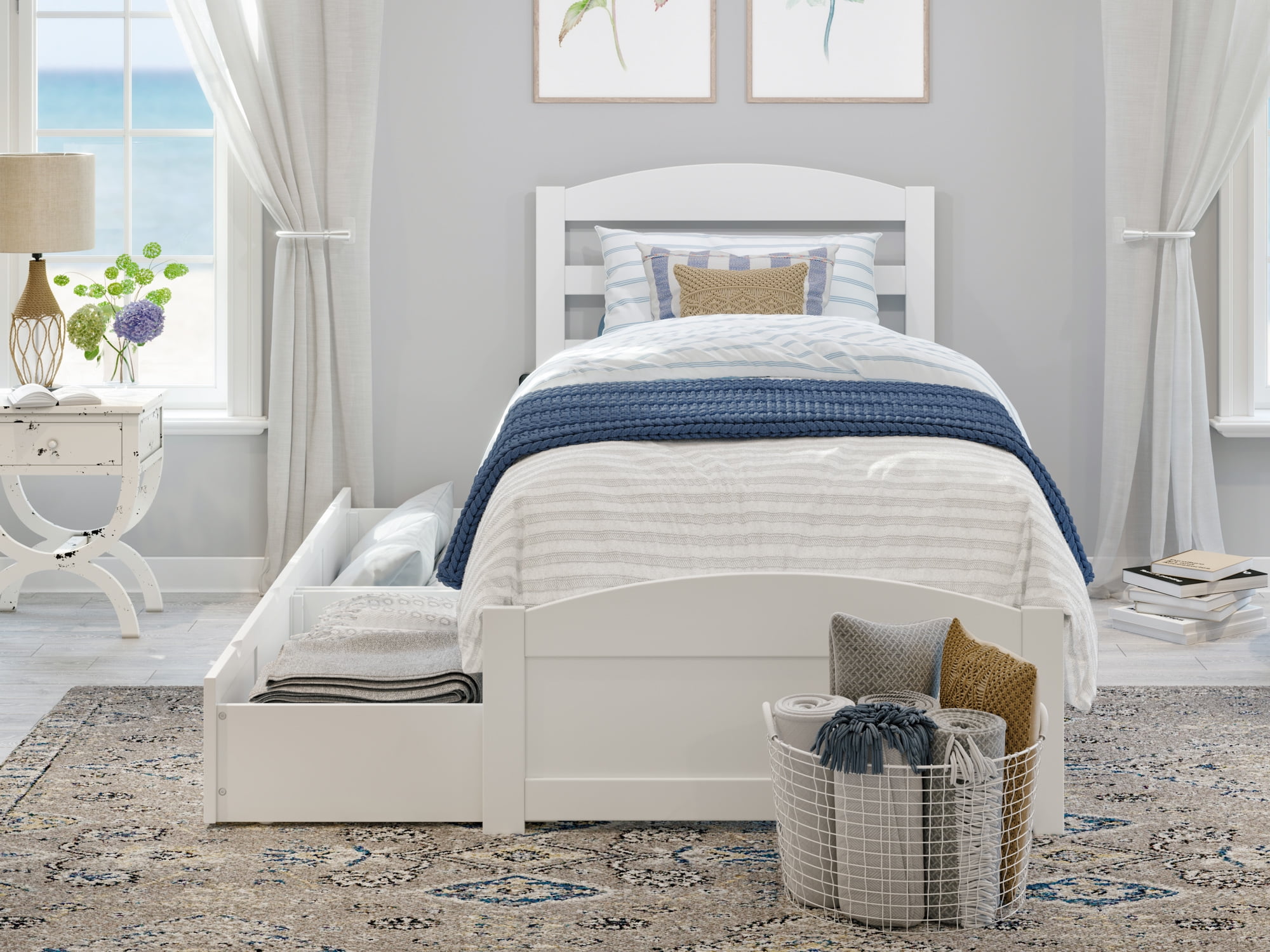 - AFI Warren Twin XL Wood Platform Bed with Headboard, Footboard & 2 Storage Drawers in White