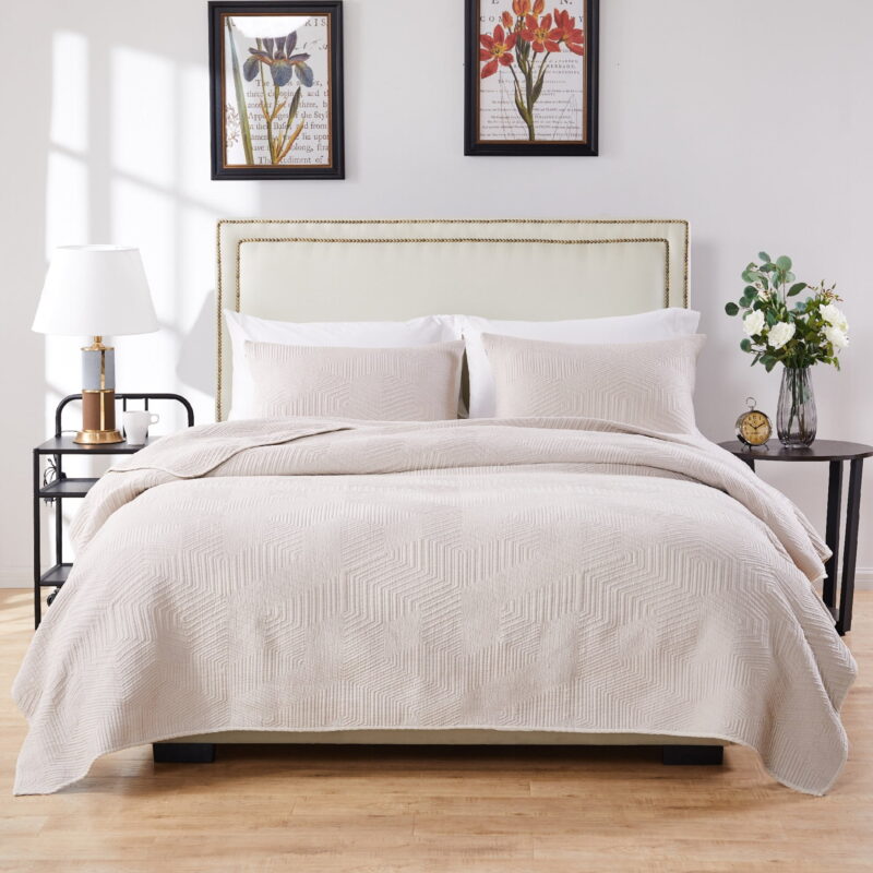 Barefoot Bungalow All Ages Parker Modern Quilt and Pillow Sham Set, Oversized, Full/Queen, Linen